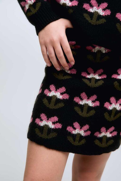 Falda de punto de color negro con estampado de flores Baboushka. Falda con cintura elástica.