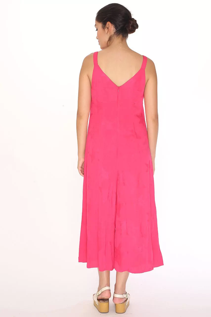 Mono de tirantes con color rosa con relieve de estrellas de mar. Escote de pico y cierre en la parte trasera con cremallera.